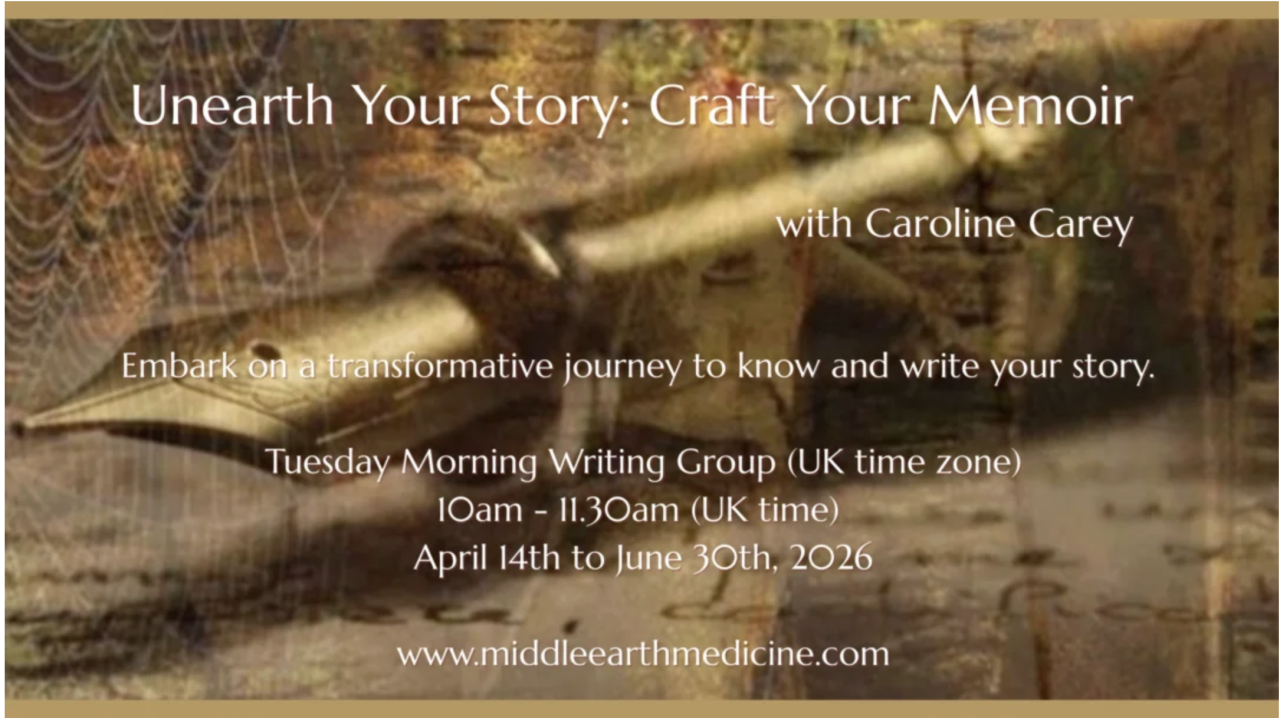 Caroline Carey, my podcast guest this week, is running this 12-week program helping you write your memoir. (unaffiliated) Link is here: https://middleearthmedicine.com/unearth-your-story-craft-your-memoir/