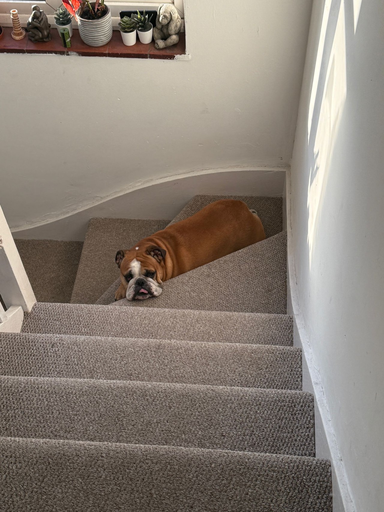 So instead of stressing about it, I like to just rest on my favourite stair and blend in, quietly, and wait until a passing HUMMAN shrieks in surprise at how good my camouflage skills are.